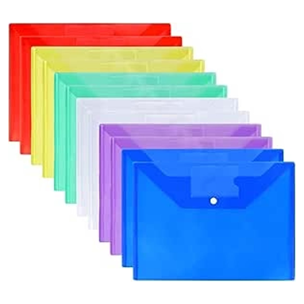 Cozlly Busta Portadocumenti, Buste Plastica Documenti A4, Cartelline Trasparenti, Colore Cartelline, Cartelle con Bottone, Cartelle File per Scuola, Casa, Ufficio, 6 Colori