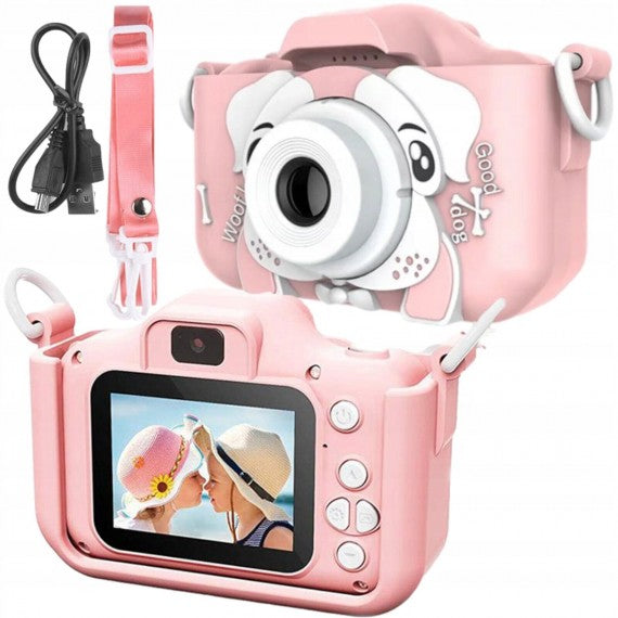 Fotocamera digitale dog X5 pink per bambini - Risoluzione video 1920x1080 foto: 3264x2448 - 20MP schermo 2" doppia lente