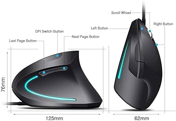 Mouse USB Cablato Mouse Verticale Ergonomico, Impugnatura Verticale e Design Ergonomico Previene Il Disturbo del Tunnel Carpale Adjustable 800/1200/1600 DPI, 5Pulsanti per PC/Laptop/Mac