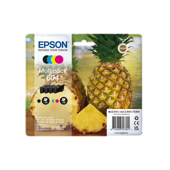 MULTIPACK EPSON 604 BK-C-M-Y ANANAS C13T10G64010 CARTUCCIA ORIGINALE PER EPSON XP 2200,3200,4200,WF 2910,2930,2950 T604