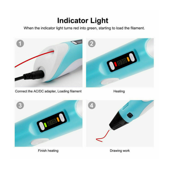 Penna 3D per disegni tridimensionali - Penna per stampa stereoscopica 3D blu + filamento PE12 con alimentatore - 3D PEN