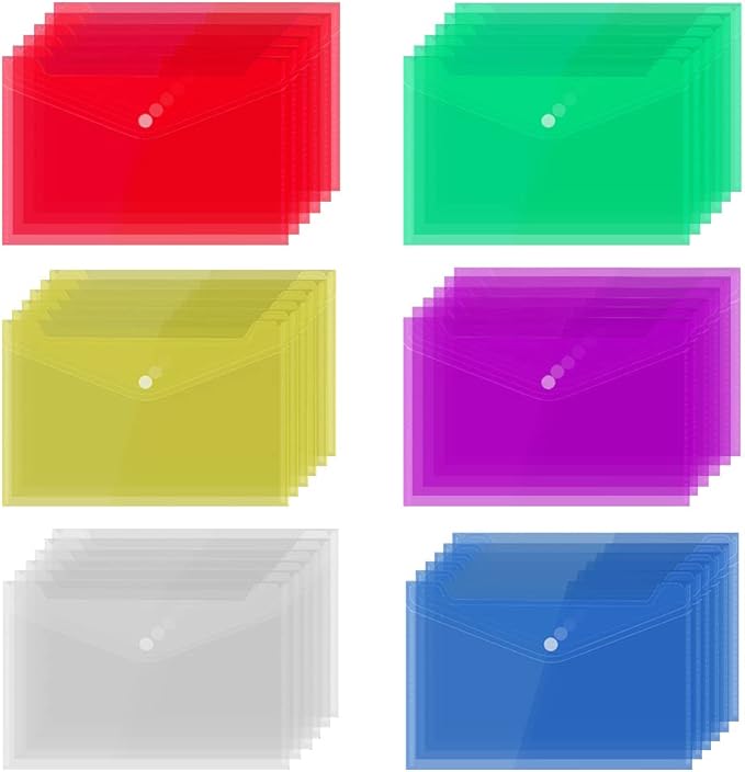 Portadocumenti, Cartellina in Plastica con Bottone A5, Portadocumenti Trasparente Busta, Impermeabile Cartelline Portadocumenti, per L'home Office, Scuola e Viaggi (6 Colori)