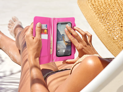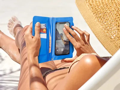 Water Clutch +EGO è il portafoglio impermeabile che protegge il tuo smartphone da sabbia e schizzi d’acqua.