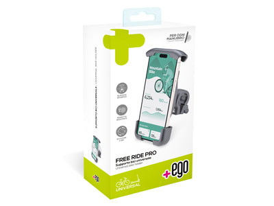 Supporto universale per manubri con diametro massimo di 30mm. Sistema di aggancio a molle per dispositivi fino a 8x16 cm. Resistente, orientabile e con blocco di sicurezza.