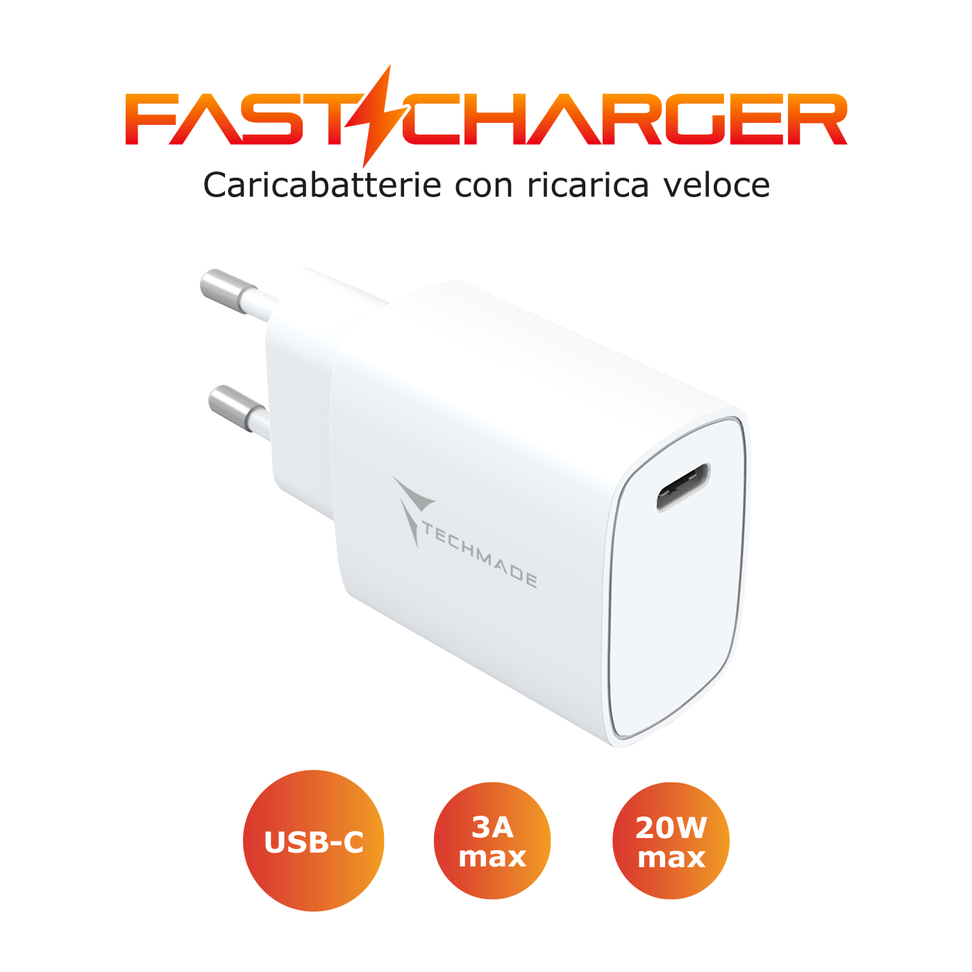 TECHMADE CARICABATTERIE 20W 1 PORTA USB-C OUTPUT FAST CHARGE