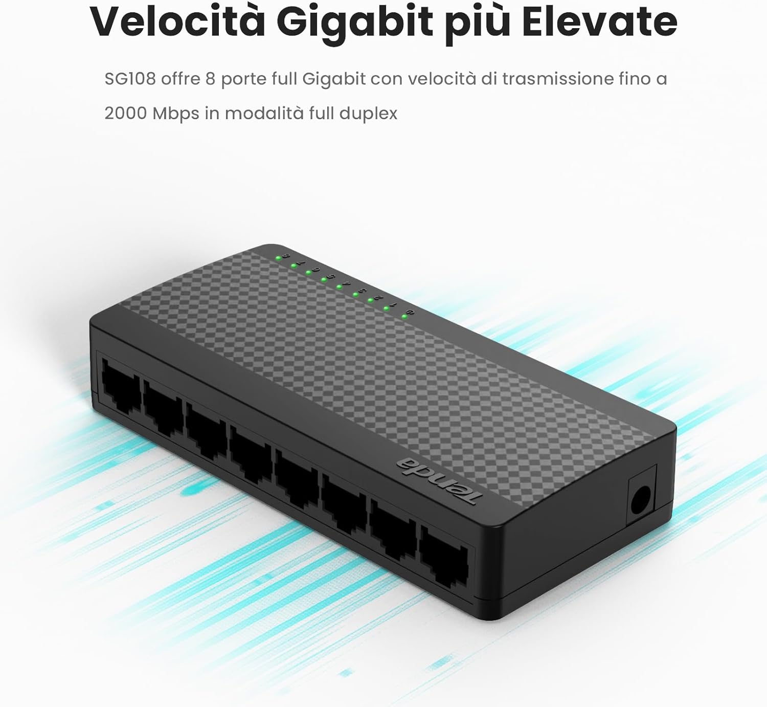 Tenda SG108 V4.0 è uno Switch Ethernet super veloce con 8 porte Gigabit e velocità fino a 10/100/1000 Mbps