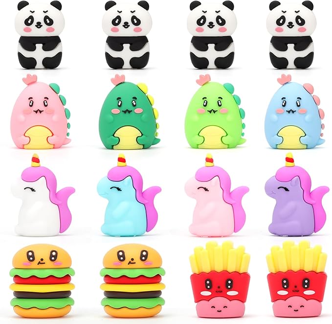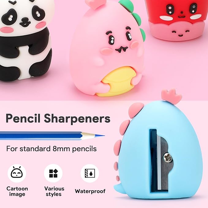simpatici rulli per matite con disegno a cartoni animati, di cui 4 con immagini di panda, unicorno, patatine fritte, dinosauro e altre immagini, belli e resistenti. Non è solo un temperamatite, ma anche il giocattolo preferito dai bambini. Può essere premiato come regalo o premio per il vostro bambino.