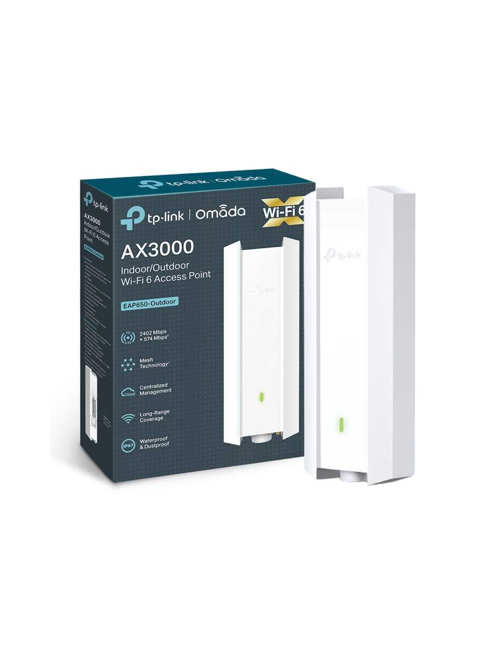 Wireless N Access Point In/Outdoor AX3000 TP-LINK EAP650-Outdoor 1P Gigabit, Dual-band 802.3at Poe and passive,IP67,4 int.ant.
