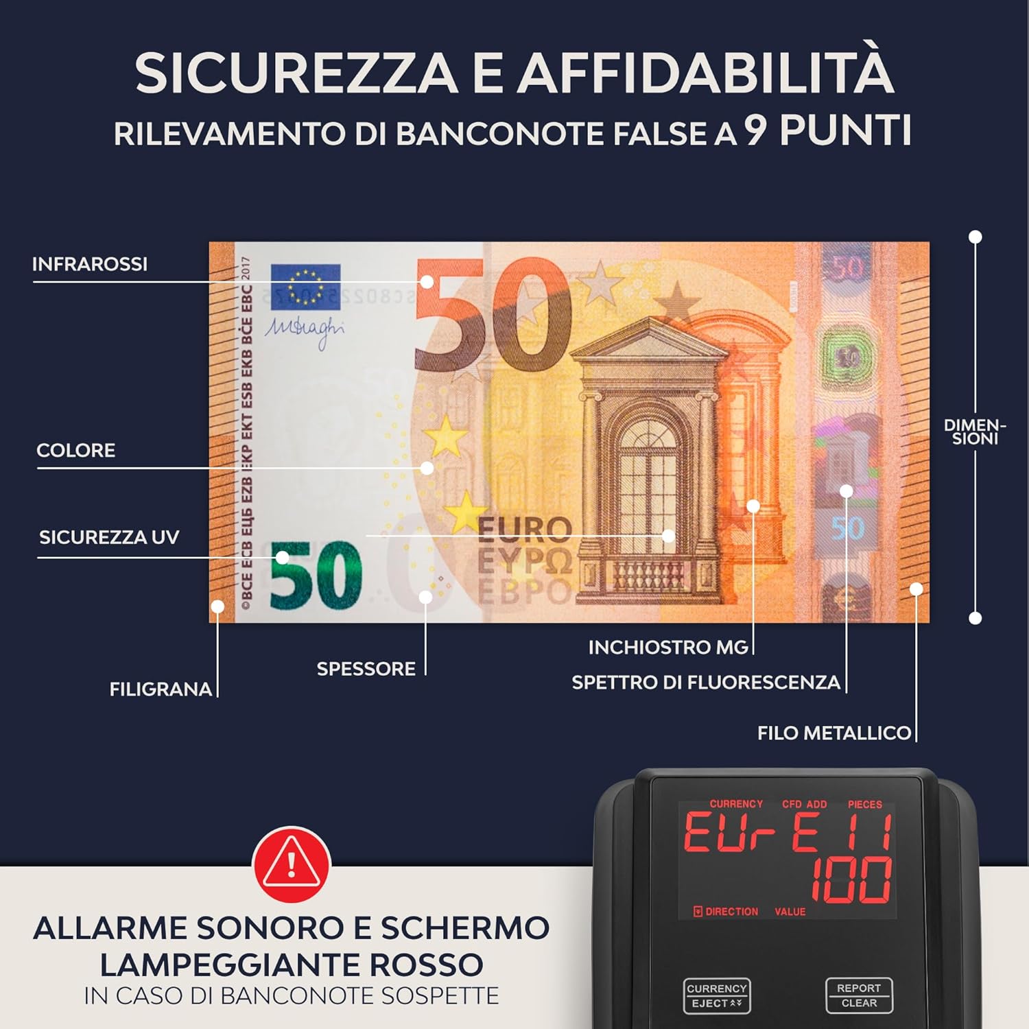 ZENACASA Rilevatore Banconote False e Conta Banconote con schermo tattile - per EUR, USD e GBP -